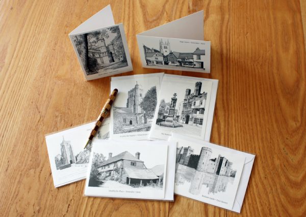A set of seven folded notelets of some of my drawings on quality card, with envelopes, as follows: